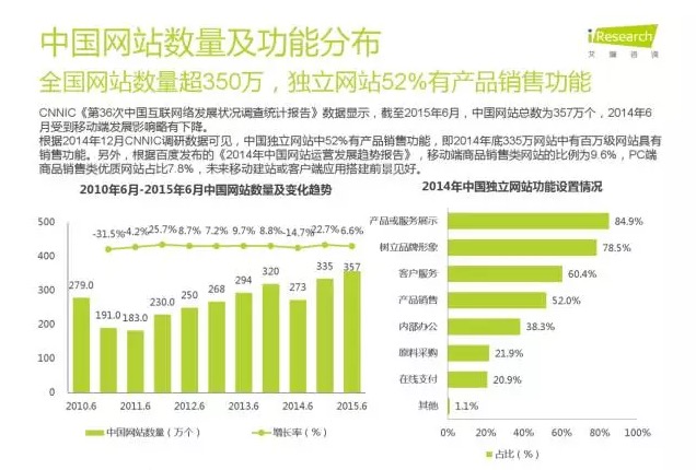 艾瑞數據表明:全國網站數量超350萬,獨立網站52%有產品銷售功能,再加上大批傳統企業觸網,這就急劇增加了對電商軟件的需求,而電商SaaS軟件的興起更是內外因相互促進的結果。